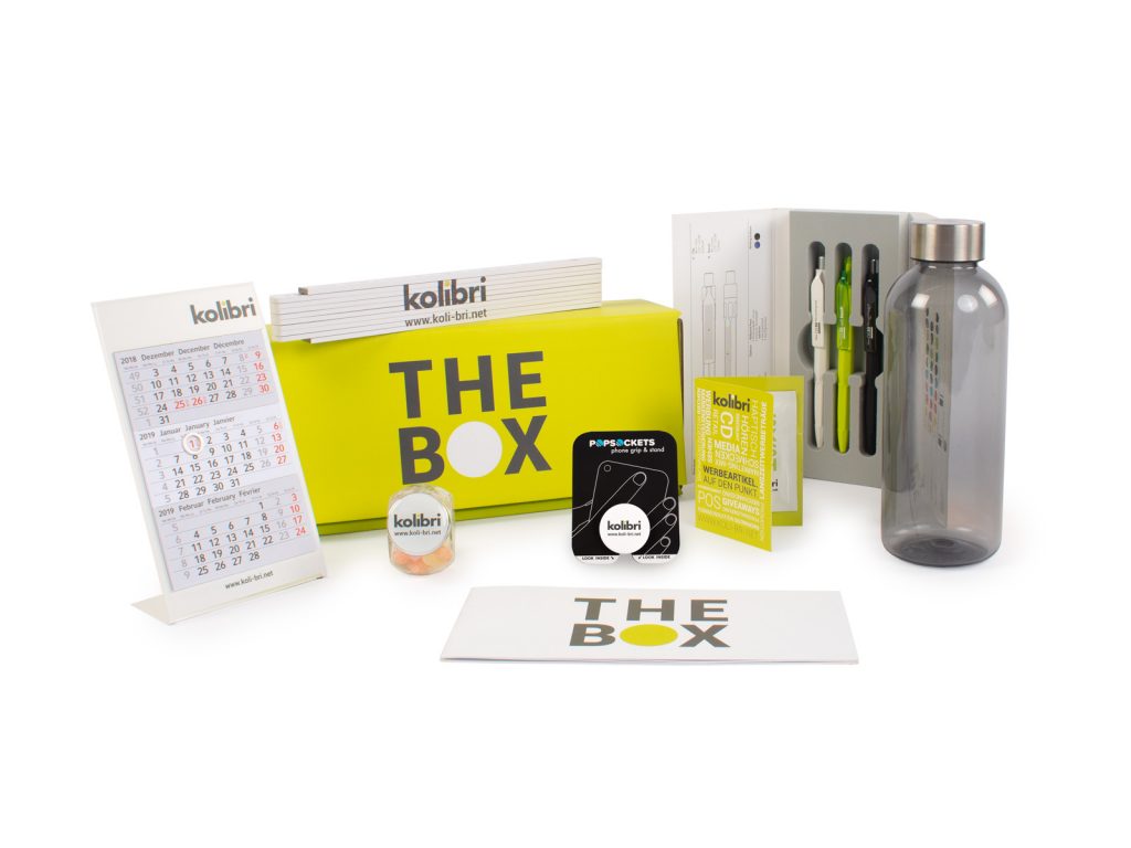 Mit THE BOX erhalten Sie mindestens zweimal im Jahr ein exklusives Probierpaket mit den neuesten Werbeartikel-Trends.